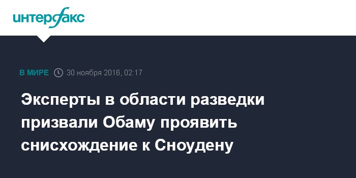 Москва. 30 ноября. INTERFAX.RU - Группа влиятельных экспертов в области разведки из так называемой комиссии Черча обратились к Бараку Обаме с просьбой разрешить бывшему агенту ЦРУ Эдварду Сноудену вернуться в США и избавить его от наказания в виде длительного тюремного заключения, пишет во вторник The Hill.