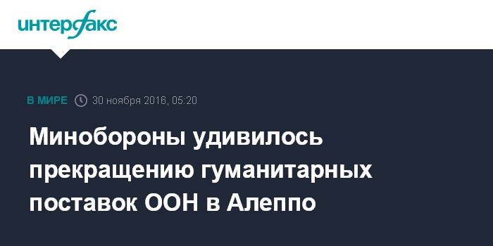 Минобороны удивилось прекращению гуманитарных поставок ООН в Алеппо