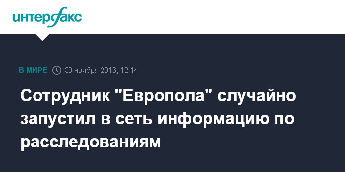 Москва. 30 ноября. INTERFAX.RU - Информация по многочисленным международным расследованиям, собранная полицейской службой ЕС "Европол", случайно попала в сеть, будучи незащищенной паролем, сообщило в среду нидерландское телевидение.