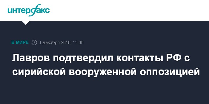 Москва. 1 декабря. INTERFAX.RU - Глава МИД РФ Сергей Лавров подтвердил, что Россия осуществляет контакты с вооруженной оппозицией в Сирии при участии Турции.