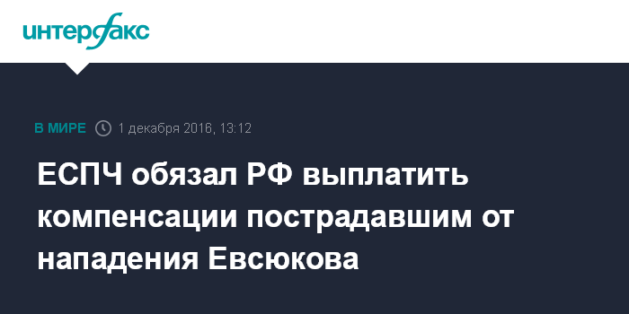 ЕСПЧ обязал РФ выплатить компенсации пострадавшим от нападения Евсюкова