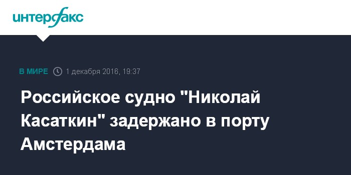 Москва. 1 декабря. INTERFAX.RU - В Амстердаме задержано судно под российским флагом "Николай Касаткин" (порт приписки Невельск), сообщили "Интерфаксу" в Российском профсоюзе моряков.