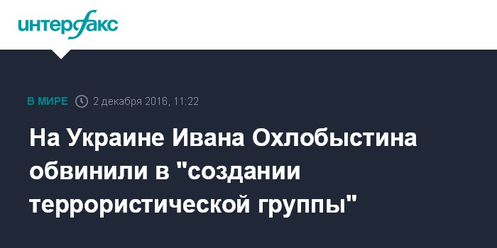 Москва. 2 декабря. INTERFAX.RU - Представитель Службы безопасности Украины Елена Гитлянская сообщила о возбуждении уголовного дела в отношении российского актера Ивана Охлобыстина, которого украинские спецслужбы обвиняют в "создании террористической группы".