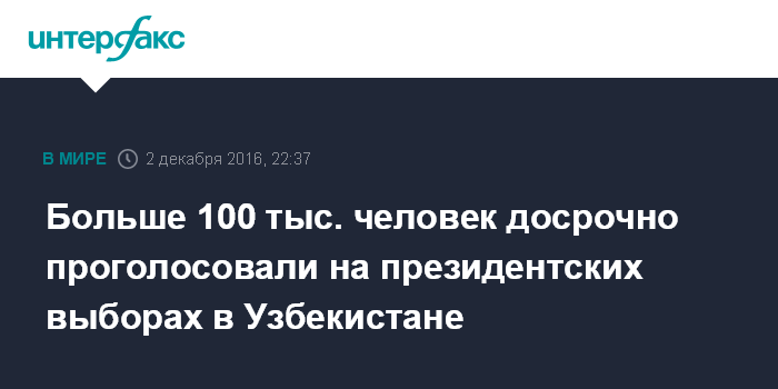 Москва. 2 декабря. INTERFAX.RU - В Узбекистане на президентских выборах досрочно проголосовали почти 115 тыс. человек, сообщили "Интерфаксу" в пятницу в республиканском пресс-центре по освещению выборов.