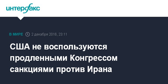 США не воспользуются продленными Конгрессом санкциями против Ирана