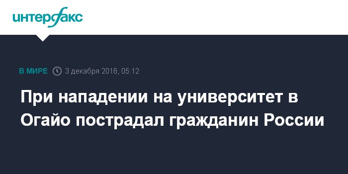 Москва. 3 декабря. INTERFAX.RU - Посольство России в Вашингтоне подтвердило информацию о том, что среди 11 пострадавших в результате нападения на территории государственного университета американского штата Огайо был российский студент.