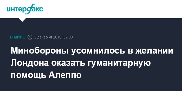 Минобороны усомнилось в желании Лондона оказать гуманитарную помощь Алеппо