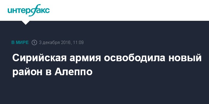 Москва. 3 декабря. INTERFAX.RU - Сирийские правительственные войска установили контроль над районом города Алеппо Тарик аль-Баб, сообщают в субботу западные СМИ.