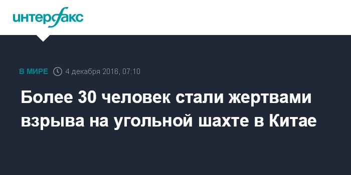 Москва. 4 декабря. INTERFAX.RU - В результате взрыва на угольной шахте в китайском автономном районе Внутренняя Монголия погибли 32 горняка, сообщили местные СМИ в воскресенье. Взрыв произошел в субботу, когда в забое находился 181 шахтер, 149 рабочих были спасены.