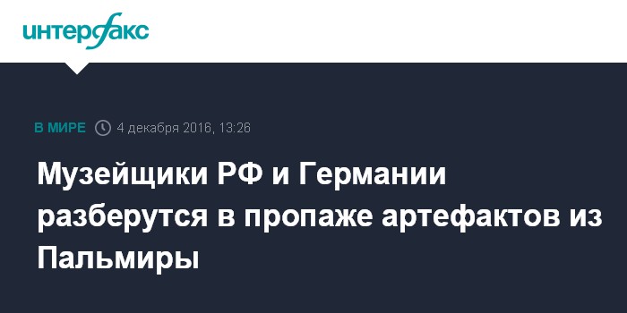 Музейщики РФ и Германии разберутся в пропаже артефактов из Пальмиры