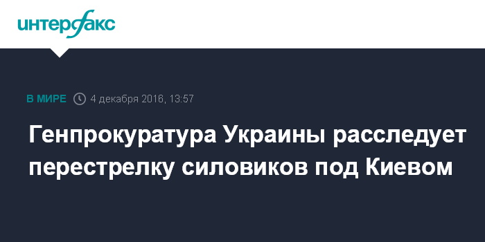Москва. 4 декабря. INTERFAX.RU - Расследовать дело о перестрелке между сотрудниками правоохранительных органов в селе Княжичи Киевской области будет Генпрокуратура Украины.