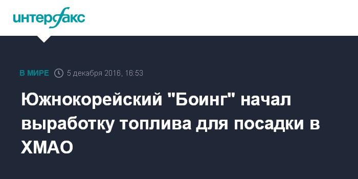 Южнокорейский "Боинг" начал выработку топлива для посадки в ХМАО
