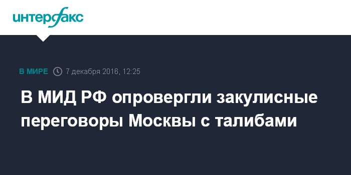 Москва. 7 декабря. INTERFAX.RU - Россия не ведет никаких закулисных переговоров с талибами и не поддерживает их, заявила официальный представитель МИД РФ Мария Захарова.