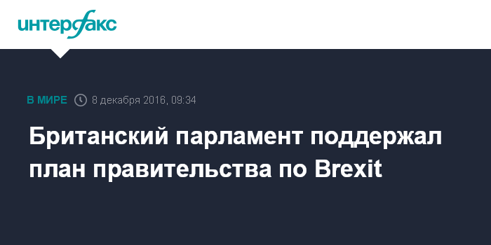 Москва. 8 декабря. INTERFAX.RU - Палата общин британского парламента высказалась в поддержку пошагового плана правительства о выходе страны из состава Европейского союза (Brexit).