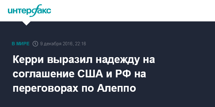 Керри выразил надежду на соглашение США и РФ на переговорах по Алеппо