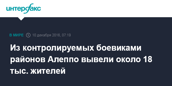 Из контролируемых боевиками районов Алеппо вывели около 18 тыс. жителей