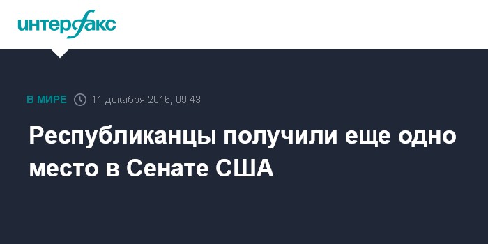Москва. 11 декабря. INTERFAX.RU - Республиканцам удалось сохранить большинство в сенате США после победы во втором туре выборов в Луизиане, сообщили в воскресенье местные СМИ. Таким образом, согласно результатам подсчета голосов, республиканцы получили в сенате 52 места из 100.