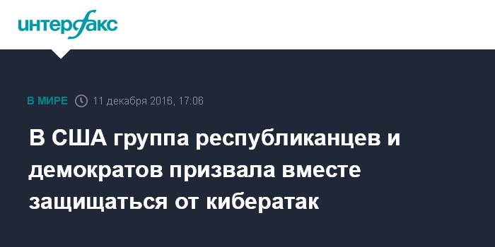 Москва. 11 декабря. INTERFAX.RU - Группа сенаторов-республиканцев и демократов в совместном заявлении призвала своих коллег отбросить межпартийные разногласия и сообща выработать меры по защите от внешних кибератак.
