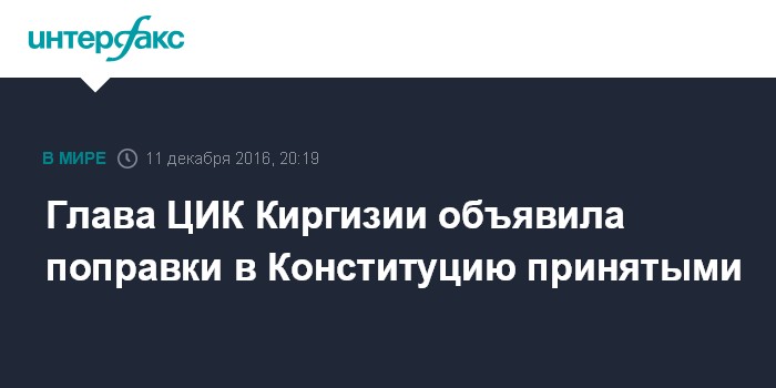 Глава ЦИК Киргизии объявила поправки в Конституцию принятыми