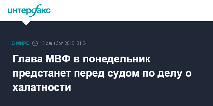 Глава МВФ в понедельник предстанет перед судом по делу о халатности