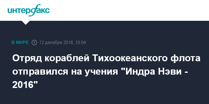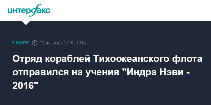 Отряд кораблей Тихоокеанского флота отправился на учения "Индра Нэви - 2016"