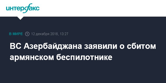 "12 декабря в направлении Физулинского района фронта подразделениями Вооруженных сил Азербайджана был обнаружен и уничтожен беспилотный летательный аппарат (БПЛА), принадлежащий вооруженным силам Армении, который пытался осуществить полеты разведывательного характера над позициями наших ВС", - сообщило оборонное ведомство Азербайджана.