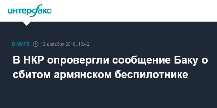 Москва. 12 декабря. INTERFAX.RU - Министерство обороны непризнанной Нагорно-Карабахской республики (НКР) опровергло сообщение Минобороны Азербайджана об уничтожении армянского беспилотника.
