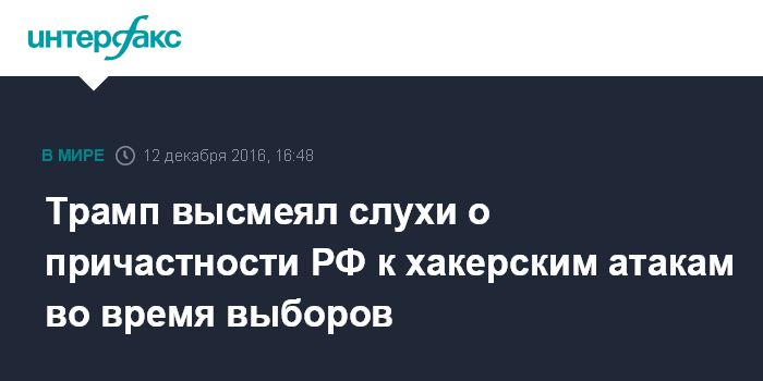 Он уже комментировал скандал в интервью Fox News, заявив, что это демократическая партия распространяет слухи о кибератаках, так как им теперь стыдно за провальный результат на выборах.