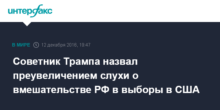 Советник Трампа назвал преувеличением слухи о вмешательстве РФ в выборы в США