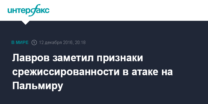 Лавров заметил признаки срежиссированности в атаке на Пальмиру