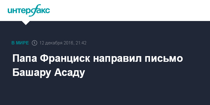 Со своей стороны агентство САНА сообщило, что Асад принял письмо от папы римского, в котором "понтифик выразил глубокое сочувствие Сирии и ее народу в свете тех условий, с которыми стране пришлось столкнуться".