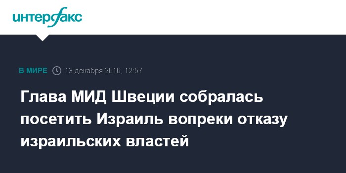 Глава МИД Швеции собралась посетить Израиль вопреки отказу израильских властей