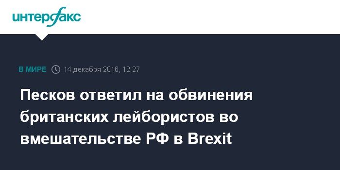 Песков ответил на обвинения британских лейбористов во вмешательстве РФ в Brexit