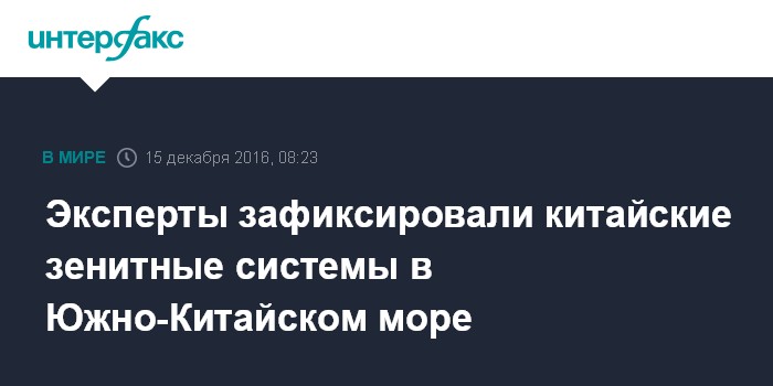 Москва. 15 декабря. INTERFAX.RU - Китай продолжает доставку и установку систем вооружений на рукотворных островах в Южно-Китайском море, говорится в распространенном докладе американского Центра статических и международных исследований.