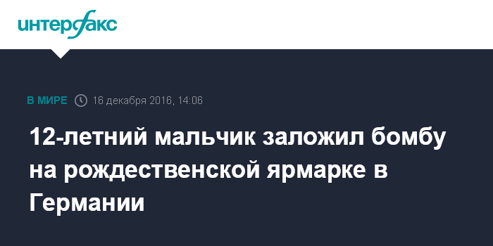 12-летний мальчик заложил бомбу на рождественской ярмарке в Германии