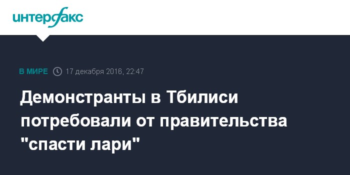 Участники демонстрации, среди которых были также депутаты от оппозиционной партии "Единое национальное движение", требовали от правительства остановить резкое обесценивание национальной валюты, которая в течение последних месяцев бьет исторические антирекорды, возлагая ответственность за это на власти страны. "Грузия входит в очень тяжелый кризис. Мы требуем от правительства изменения экономической политики, а также отмены решения о повышении с нового года налогов", - заявляли протестующие.