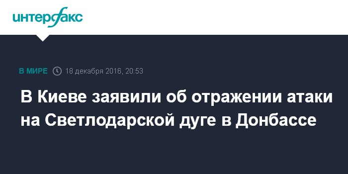 Москва. 18 декабря. INTERFAX.RU - В двухчасовом бою в воскресенье военнослужащие Вооруженных сил Украины отразили попытку выбить их с позиций в районе Светлодарской дуги (проходит по Донецкой и Луганской области) , утверждают в штабе силовой операции в Киеве.