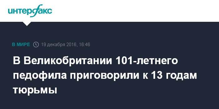 В Великобритании 101-летнего педофила приговорили к 13 годам тюрьмы