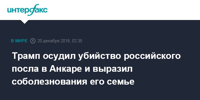 Трамп осудил убийство российского посла в Анкаре и выразил соболезнования его семье