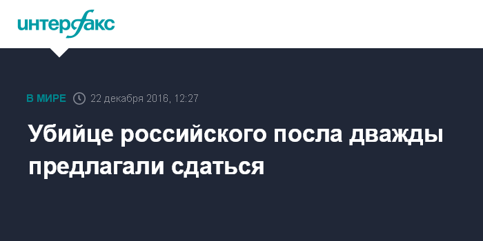 Москва. 22 декабря. INTERFAX.RU - Турецкий полицейский Мевлют Мерт Алтынташ, убивший посла РФ в Анкаре Андрея Карлова, отказался сдаться полиции, заявив, что хочет умереть, сообщают в четверг турецкие СМИ.