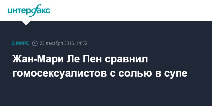 "Гомосексуалисты - как соль в супе: если ее совсем нет, то это немного пресно, но если ее слишком много, то это невозможно есть", - заявил он в интервью французским журналистам.