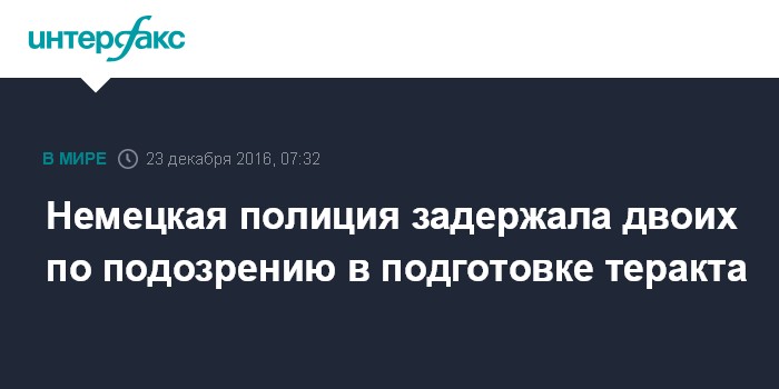 Москва. 23 декабря. INTERFAX.RU - Полиция германского города Дуйсбурга (федеральная земля Северный Рейн-Вестфалия) задержала двух человек, подозреваемых в подготовке террористического акта.