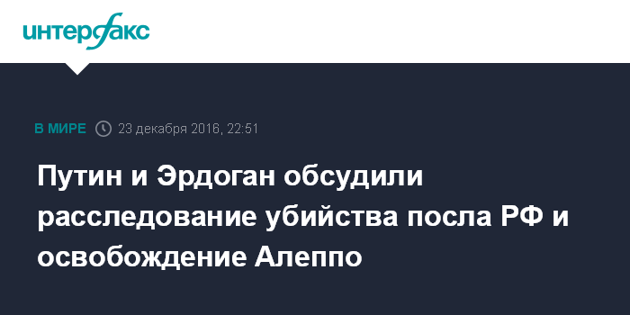 Путин и Эрдоган обсудили расследование убийства посла РФ и освобождение Алеппо