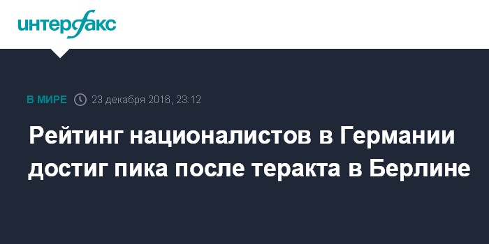 Рейтинг националистов в Германии достиг пика после теракта в Берлине