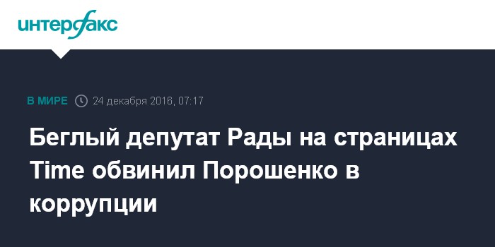 Беглый депутат Рады на страницах Time обвинил Порошенко в коррупции