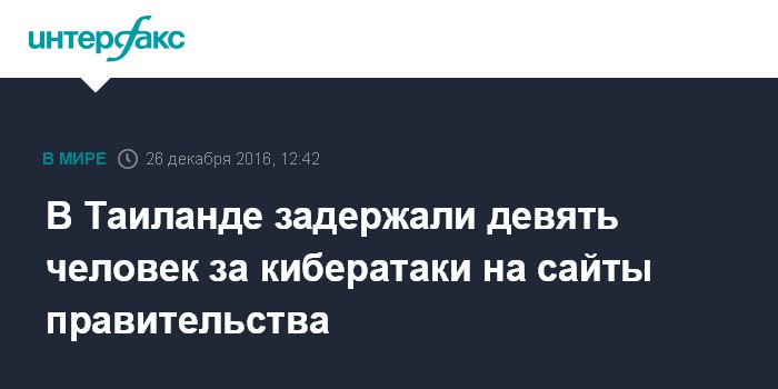 Москва. 26 декабря. INTERFAX.RU - Полиция Таиланда задержала девять человек, которых подозревают в организации кибератак на сайты правительства страны, сообщает в понедельник сингапурское издание The Straits Times.
