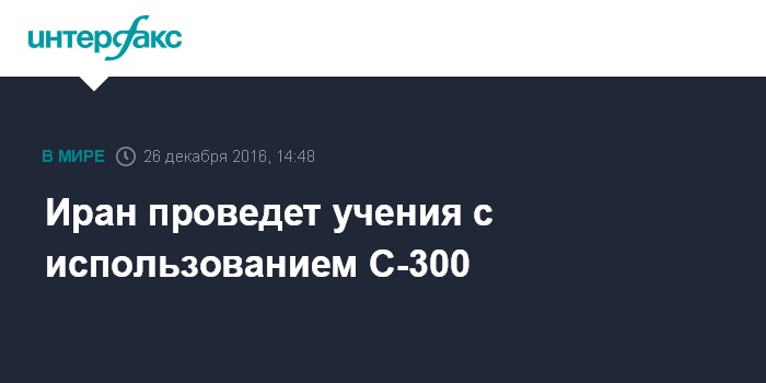 Москва. 26 декабря. INTERFAX.RU - Поставленные Россией системы ПВО С-300 примут участие в крупных противоракетных учениях, стартовавших в понедельник на юге Ирана.