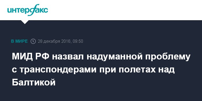 МИД РФ назвал надуманной проблему с транспондерами при полетах над Балтикой