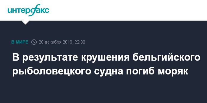 Москва. 28 декабря. INTERFAX.RU - Один из трех членов экипажа бельгийского рыболовного судна, перевернувшегося в ночь на среду у берегов Великобритании, скончался, сообщил Морской центр по спасению и координации.
