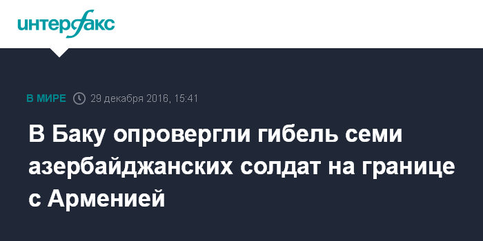 Москва. 29 декабря. INTERFAX.RU - Информация о гибели семи азербайджанской военнослужащих в бою на границе с Арменией не соответствует действительности, утверждают в Минобороны Азербайджана.